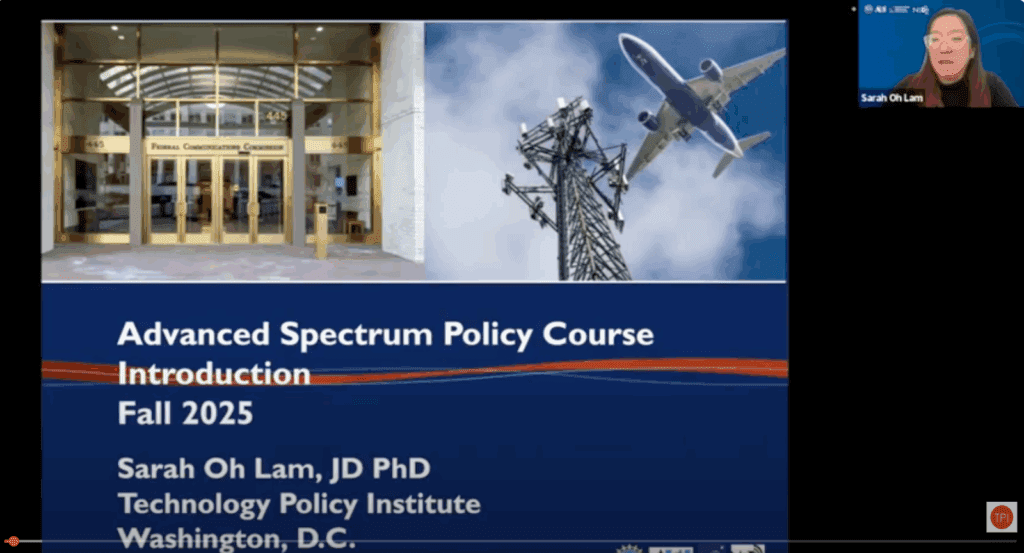 TPI Senior Fellow Sarah Oh Lam just finished recording a series of video lectures for the National Radio Astronomy Observatory (NRAO) on Advanced Spectrum Policy, a one credit graduate course on federal and international spectrum policy (Fall 2025).